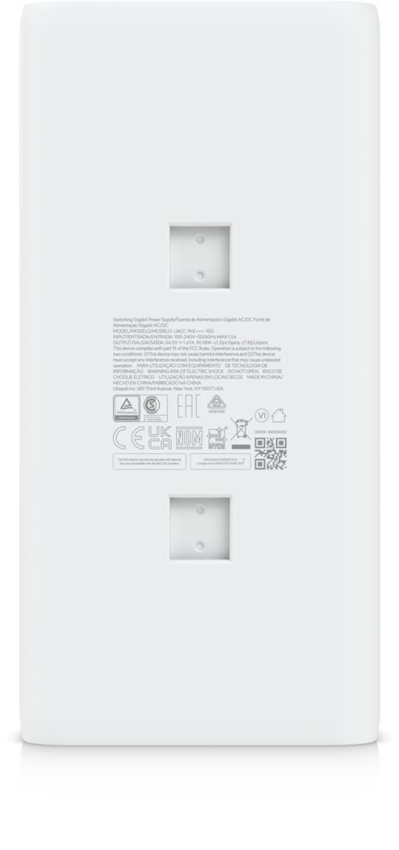 Popis produktu Ubiquiti 10G PoE+++ je kvalitní 10Gbps PoE injektor s jedním výstupním PoE portem pro napájení zařízení výstupním napětím 54V s maximálním výstupním výkonem 90W, kterým dokážete napájet i zařízení náročnější na spotřebu energie . Napájení je vedeno po všech vodičích 1,2,4,5 (+) a 3,6,7,8 (-). Zdroj nabízí ochranu před elektrickým přepětím, napěťovým špičkám a proudovému přetížení. Obsah Balení • Zařízení • Držák na zeď • Napájecí kabel • Šrouby a hmoždinky Technické parametry Konektory a rozhraní Rychlost ethernetu [Mb/s]:10/100/1000/2500/5000/10000 Gigabit LAN:Ano Napájení Vstupní napětí [V]:100 .. 240V AC Výstupní výkon [W]:90 Napájení na pinech:1,2,4,5 (+), 3,6,7,8 (-) Počet PoE Out portů:1 Výstupní napětí [V]:54 Výstupní proud [A]:1,12 Fyzické charakteristiky Stínění:Ano LED indikace:Ano Provozní teplota [°C]:0 až 40 Šířka [mm]:63 Výška [mm]:34 Hloubka [mm]:106.