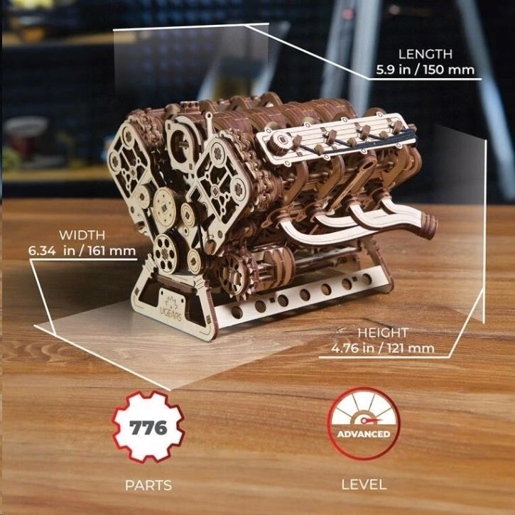 V8 Engine je model v měřítku 1:6, který funguje buď pomocí elektromotoru, nebo otáčením knoflíku, což vám umožní sledovat fascinující fungování tohoto ikonického spalovacího motoru. Model přesně zobrazuje všechny hlavní mechanismy skutečného osmiválce, včetně osmi válců s rytmicky se pohybujícími písty, přičemž dva válce „vystřelí“ na každých 90 stupňů otočení klikové hřídele, 16 ventilů s pružinami, které se otevírají a zavírají, jak je tlačí hlavy na rotujících vačkových hřídelích, komponenty klikové skříně a ventilového rozvodu spojené s rozvodovým řetězem a škrticí klapkou na sacím potrubí. Model je poháněn elektromotorem stylizovaným jako generátor. Hadovitý řemen spojuje řemenici klikové hřídele s ostatními řemenicemi spojující příslušenství motoru, jako je kompresor klimatizace, alternátor, čerpadlo posilovače řízení a vodní pumpa. Připojte model ke zdroji napájení pomocí kabelu USB-C, poté zapněte vypínač a sledujte, jak motor ožívá, nebo ručně uveďte motor V-8 do pohybu otočným knoflíkem umístěným pod vypínačem.