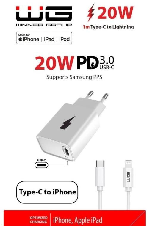 Síťová nabíječka MFi 1xUSB-C 20W + kabel