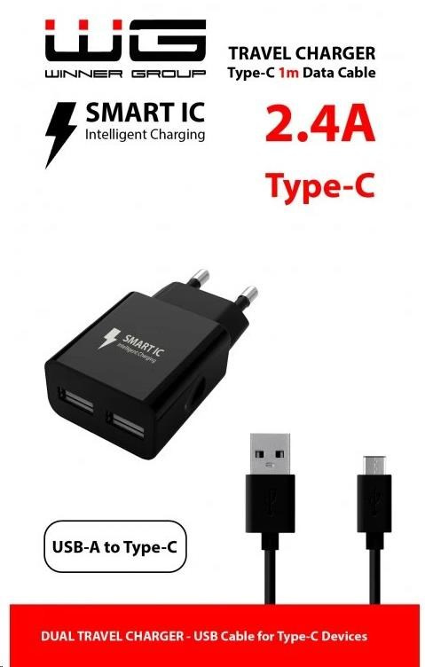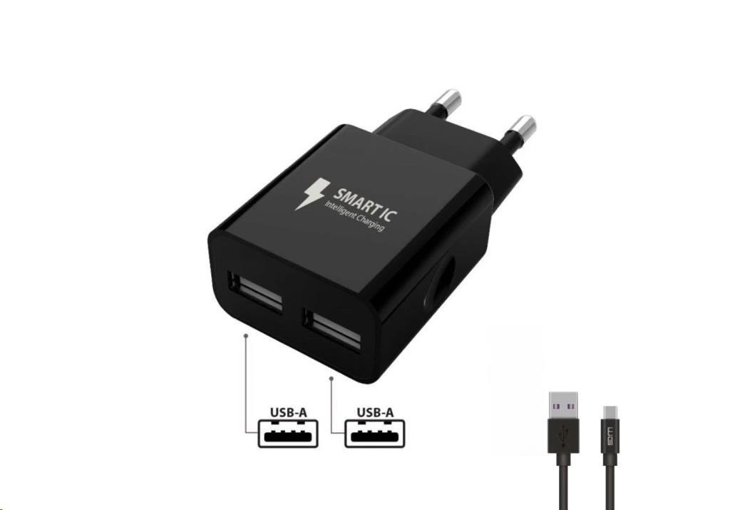 Síťová nabíječka 2xUSB-A 12W + kabel USB-C