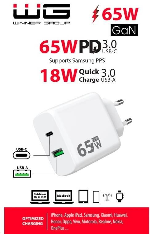 - Celkový výkon nabíječky: 65W
