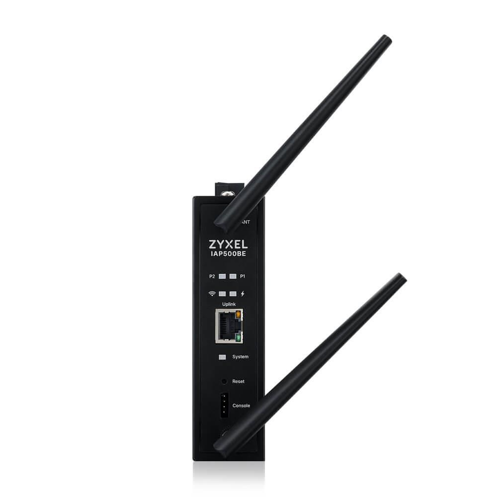 Zyxel IAP500BE, BE5000, Dual Radio 2x2 MU-MIMO, PoE+ (802.3at), Industrial AP, DIN Rail mounted Standalone/Nebula Cloud Managed, DC Power Wireless ________________________________________ Standard IEEE802.11 be/ax/ac/n/g/b/a MIMO MU-MIMO Wireless speed 2.4GHz: 688Mbps 5GHz: 4324Mbps Frequency band 2.4GHz: USA (FCC): 2.412 to 2.462 GHz Europe (ETSI): 2.412 to 2.472 GHz 5GHz: USA (FCC): 5.15 to 5.35 GHz; 5.470 to 5.850 GHz European (ETSI): 5.15 to 5.35 GHz; 5.470 to 5.725 GHz Bandwidth 20-, 40- ,80-, 160- and 240-MHz Conducted typical transmit output power*1 US (2.4GHz/5GHz): 25/26dBm EU (2.4GHz/5GHz): 16/26dBm RF Design ________________________________________ Antenna type External Antenna Antenna gain 2.4GHz: 2 dBi, 2x2:2SS 5GHz: 3 dBi, 2x2:2SS Minimum receive sensitivity Min. Rx sensitivity up to -99 dBm WLAN Features ________________________________________ Band steering Yes WDS/Smart Mesh*2 Yes Wireless Bridge Yes Fast roaming Pre-authentication, PMK caching and 802.11r/k/v DCS Yes Load balancing Yes Advanced cellular coexistence Yes Security ________________________________________ Encryption WEP WPA WPA2 WPA3 Authentication IEEE 802.1X/ RADIUS authentication Access management L2-isolation MAC filtering Rogue AP detection Networking ________________________________________ IPv6 Yes VLANs Yes WMM Yes U-APSD Yes Management ________________________________________ Operating mode Nebula cloud-managed Controller-managed Standalone Web UI/CLI Yes SNMP Yes Physical Specifications ________________________________________ Item Dimensions (WxDxH)(mm/in.) 125 x 130 x 35 / 4.92 x 5.12 x 1.38 (without Antenna) Weight (g/lb.) 646 / 1.42 Packing Dimensions (WxDxH)(mm/in.) 160 x 180 x 50 / 6.30 x 7.09 x 1.96 Weight (g/lb.) 864 / 1.90 Included accessories Din rail mount Two 2.4GHz/5GHz detachable antennas MTBF (hr) 631,165 Physical Interfaces ________________________________________ Ethernet port 1 x 1/2.5GbE LAN Power PoE (802.3at): power draw 24W DC input: 12V-48V redundant dual input PoE modes IEEE 802.3af: Not supported IEEE 802.3at: Unrestricted IEEE 802.3bt: Unrestricted Environmental Specifications ________________________________________ Operating Temperature -25°C to 65°C/-13°F to 149°F Humidity 10% to 90% (non-condensing) Storage Temperature -40°C to 70°C / -40°F to 158°F Humidity 10% to 90% (non-condensing) Certifications ________________________________________ Radio FCC Part 15C FCC Part 15E FCC Part 2.1091 ETSI EN 300 328 EN 301 893 Draft EN 303 687 EN 50385 EN 50665 EN IEC 62311 LP0002 EMC FCC Part 15B EN 301 489-1 EN 301 489-17 EN55032 EN55035 EN61000-3-2/-3 EN60601-1-2 BSMI CNS15936 Safety EN 62368-1 IEC 62368-1 BSMI CNS15598-1.